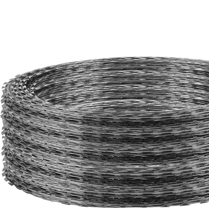 El alambre de púas (también conocido como cinta espinosa o cinta) se utiliza para proteger los límites y / o perímetros al prevenir o disuadir el paso de los seres humanos.Las puntas del alambre de afeitar son muy afiladas y están destinadas a rasgar ropa y carne, ya que sigue las curvas en el cuerpo cuando una persona intenta cruzarlas.